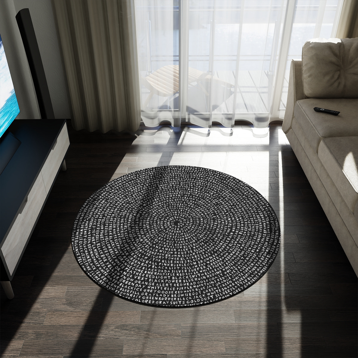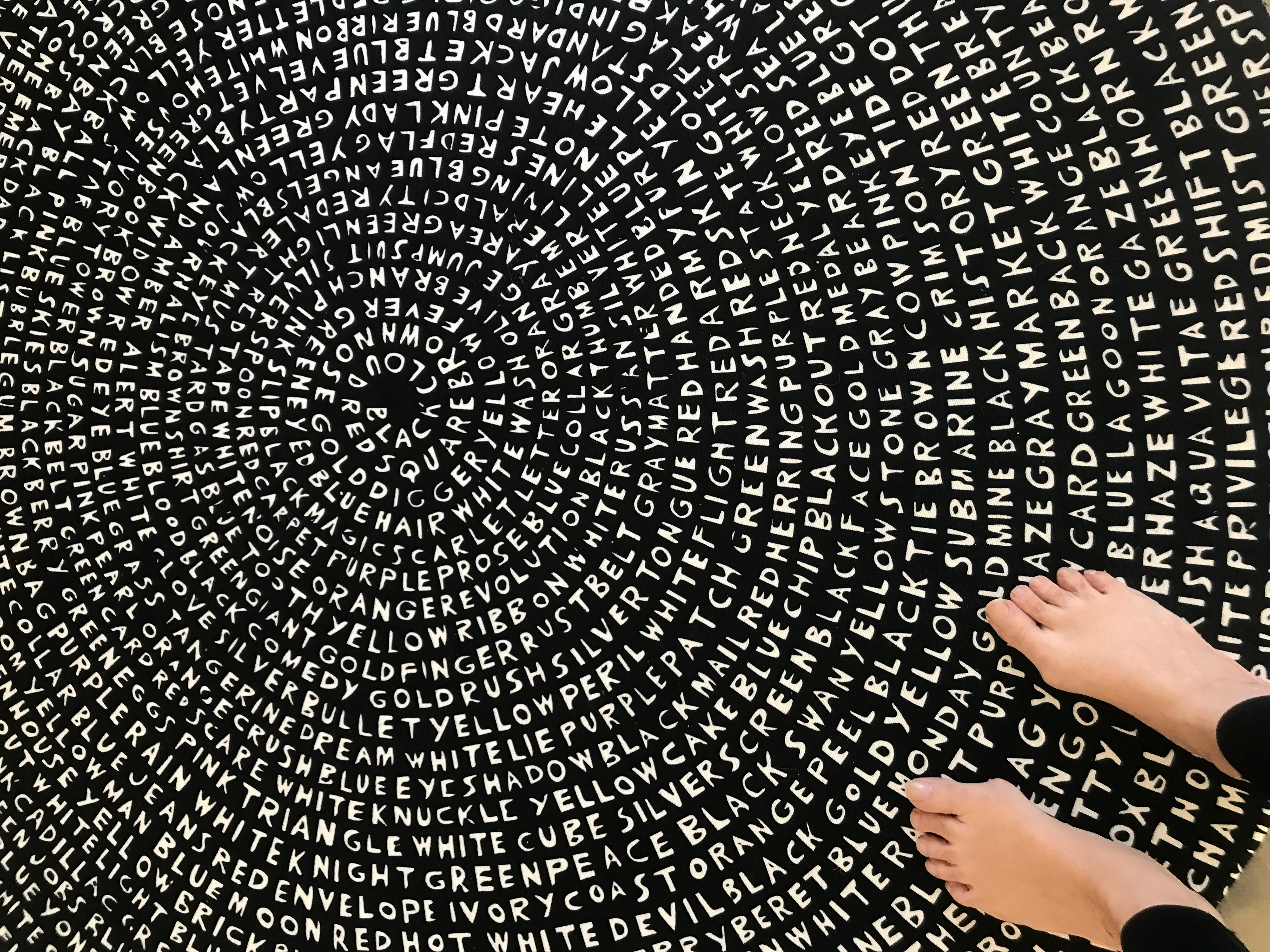 I have made my Idiomatic Color Wheel into a rug that you can purchase! The rug is 60" round, polyester chenille with my artwork printed directly on it. Price is $300 + shipping. If you're interested, contact me.